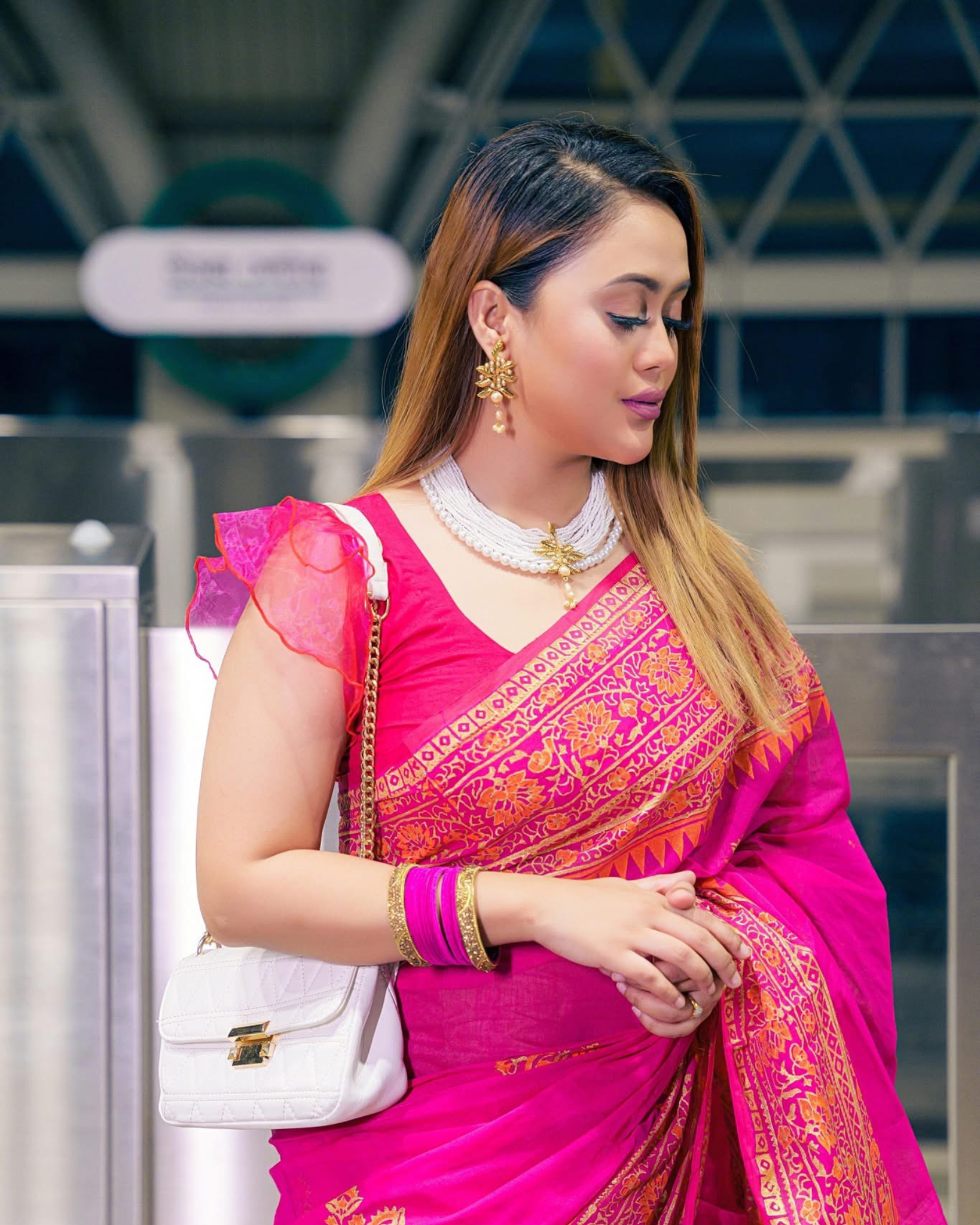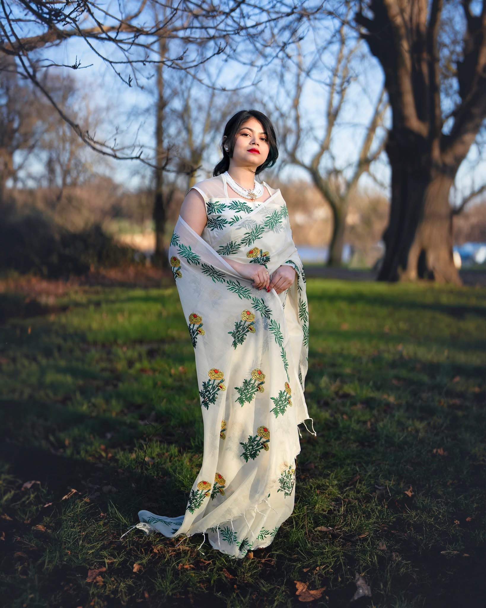 Handcrafted by skilled local artisans, this gold-plated brass necklace features elegant white pearls and a traditional floral pendant. A perfect fusion of heritage and modern style, it adds timeless charm to any look.