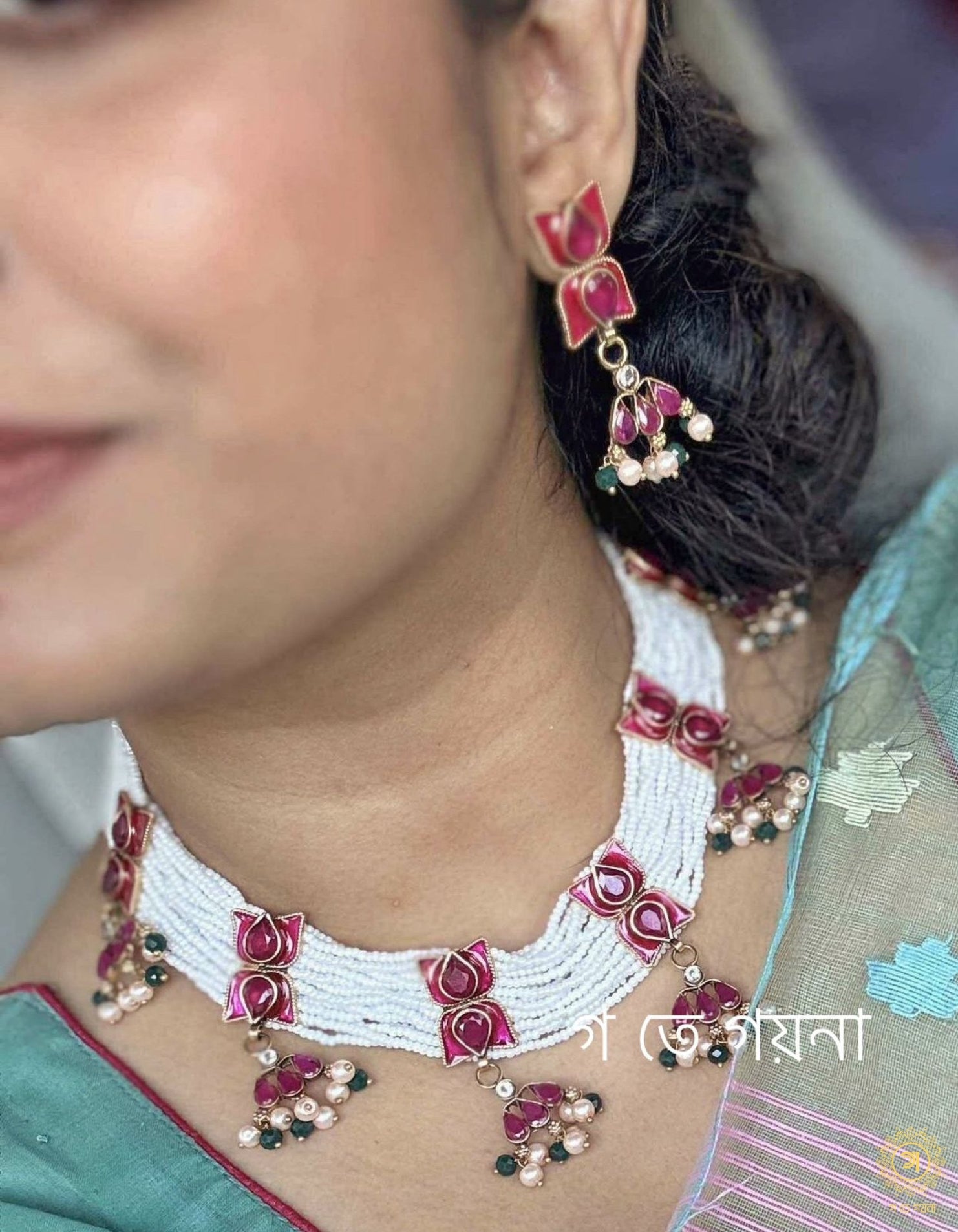 💖 পণ্য বিবরণী: পদ্মফুল মিনা কাজের চোকার সেট